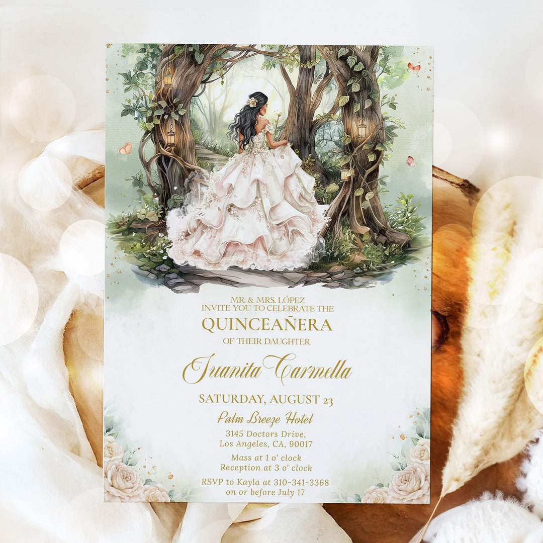 Enchanted Forest Quinceañera Invitation, EDITABLE Champagne Magical ...
