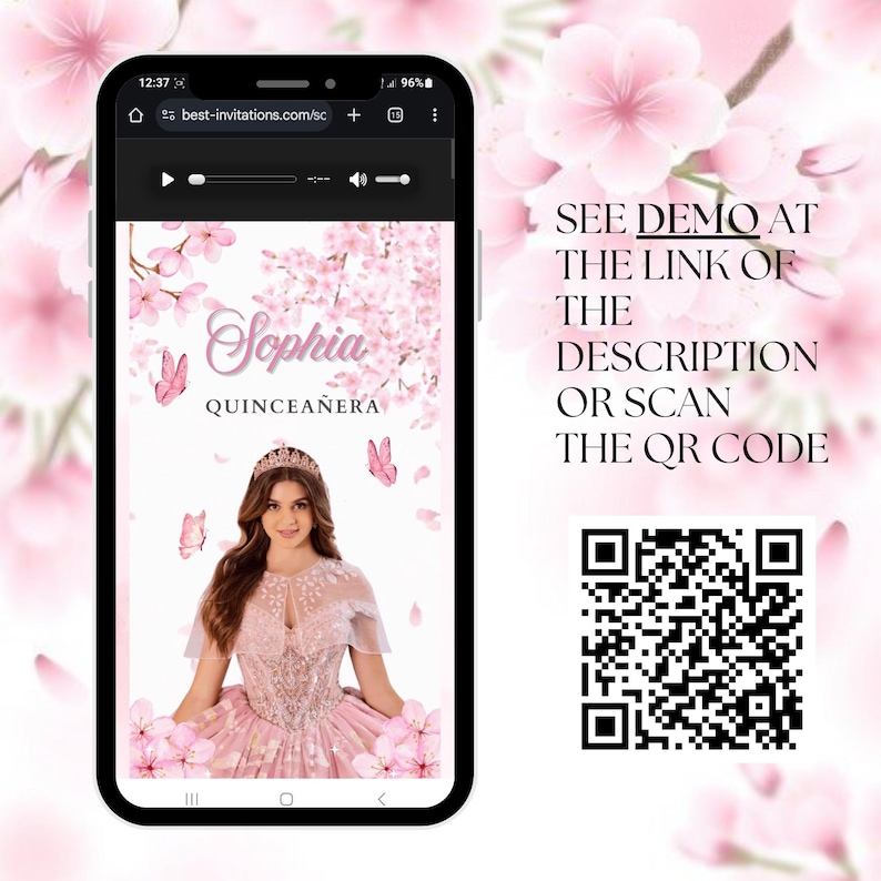 Cherry Blossom Quinceanera Invitation & Rsvp Tracking, Quinceañera Mini ...