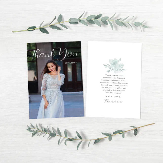 Elegant Quinceanera Floral Script Thank You Photo Invitation | Zazzle
