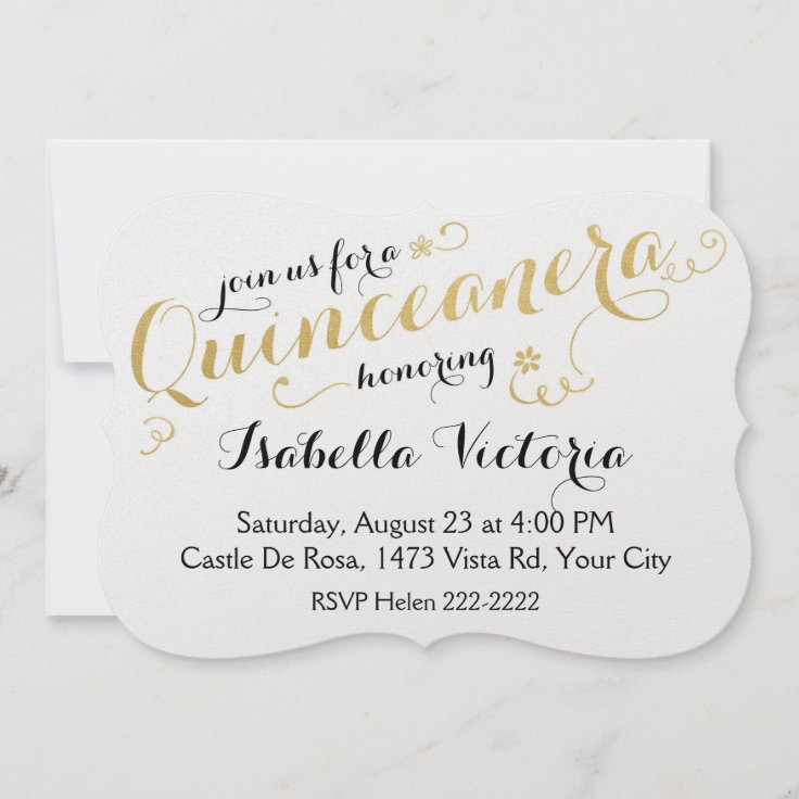 Gold Script Quinceanera Invitation | Zazzle