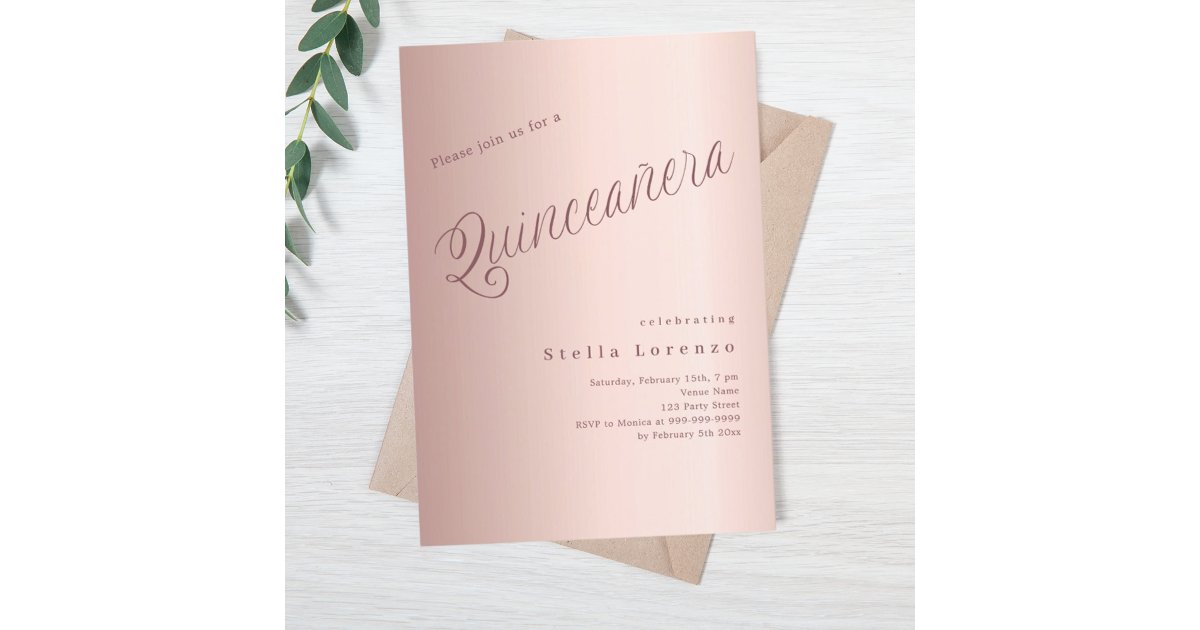 Rose gold script elegant Quinceanera Invitation | Zazzle