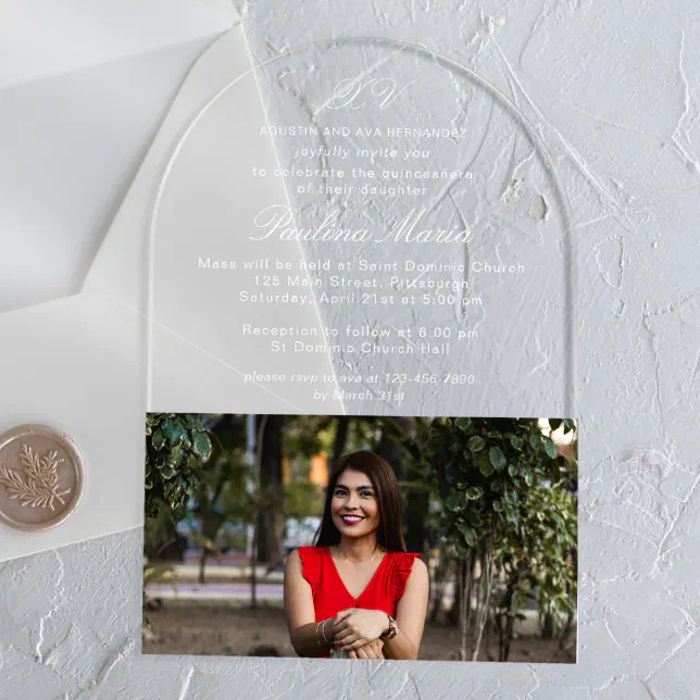 Simple Classic Script XV Photo Quinceañera Acrylic Invitations | Zazzle