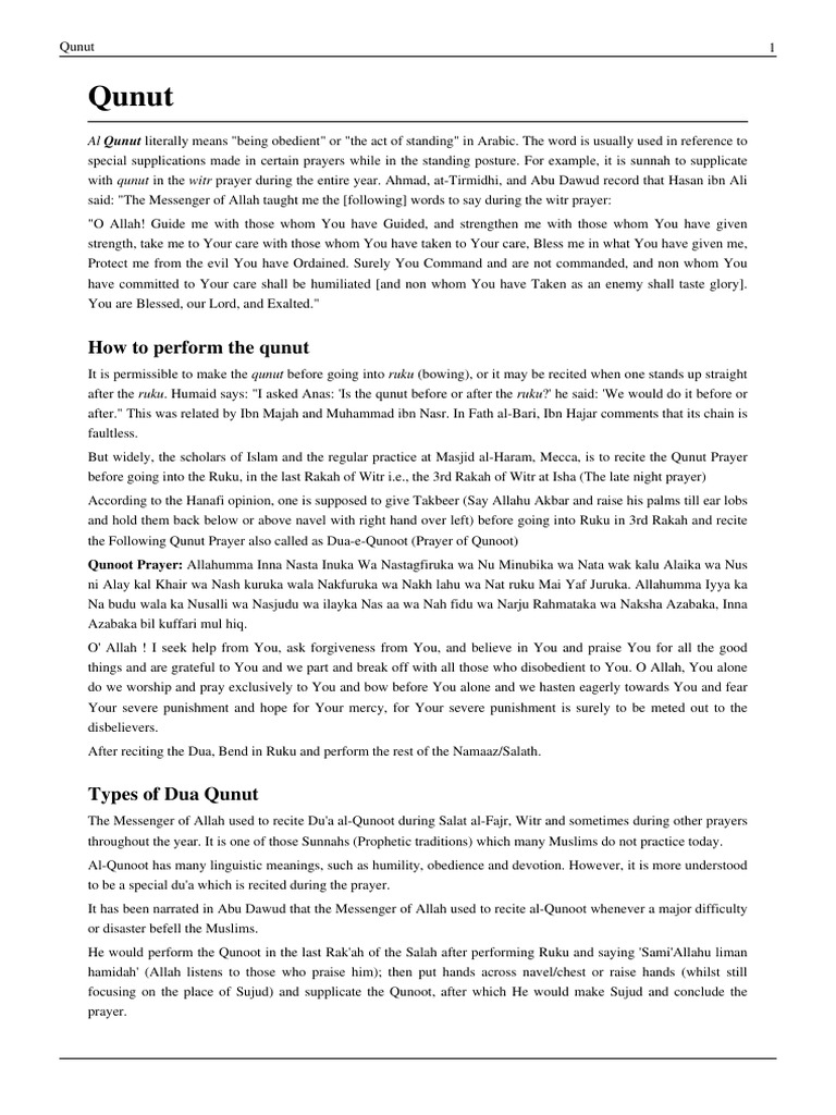 Qunut: How To Perform The Qunut | PDF | Islamism | Sharia
