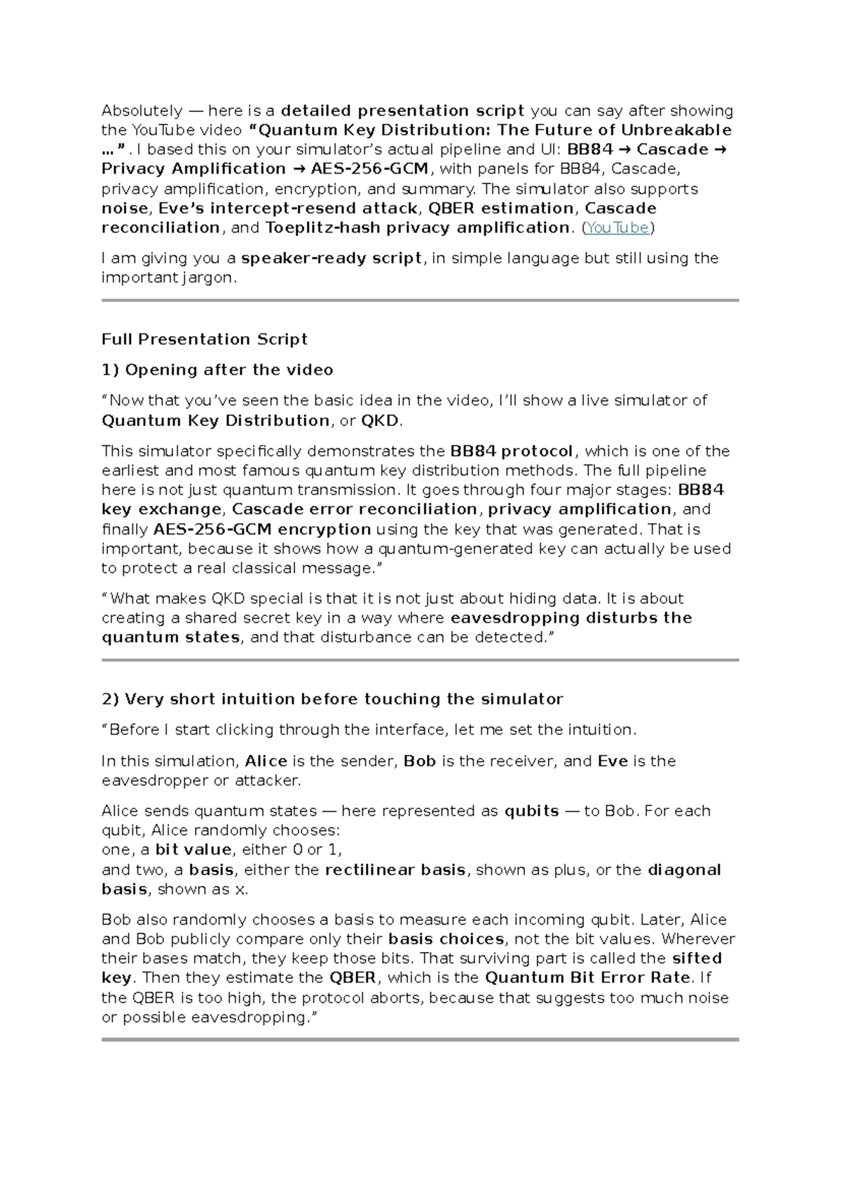 QKD Simulation Transcript: BB84 Protocol Presentation Script - Studocu