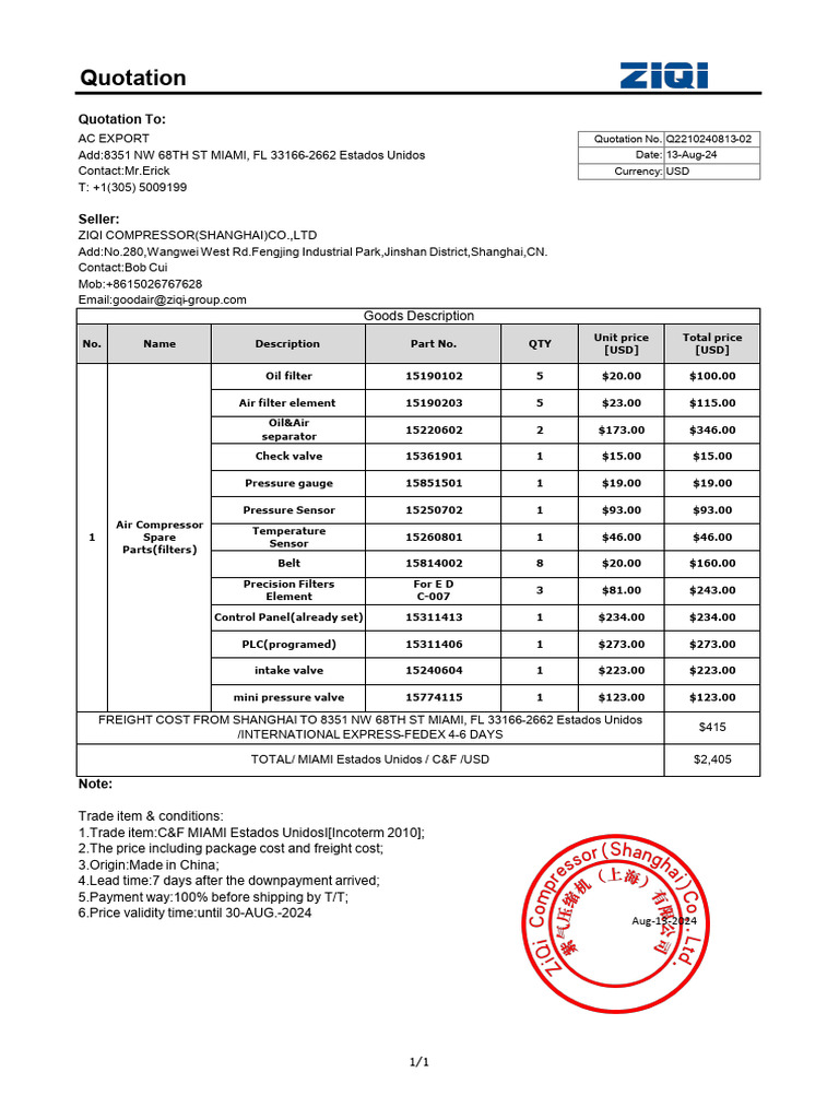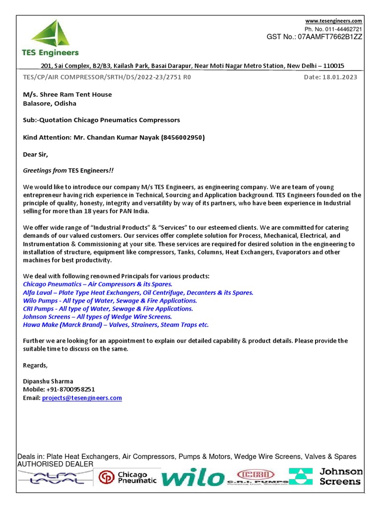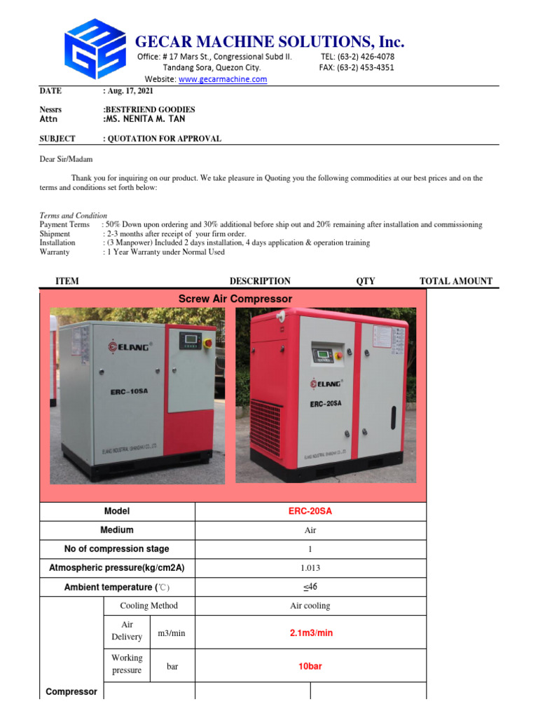 Quotation for Air Compressor Sale | PDF | Mechanical Engineering ...