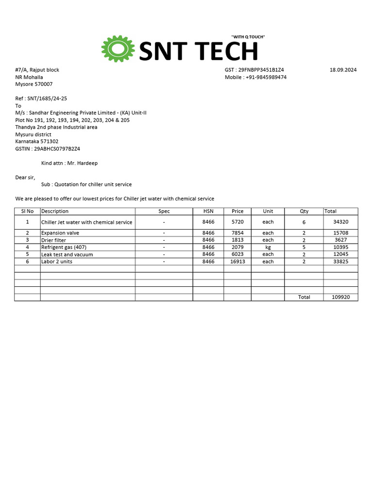 Quotation 1685 Sandhar Fab Compressor Service | PDF