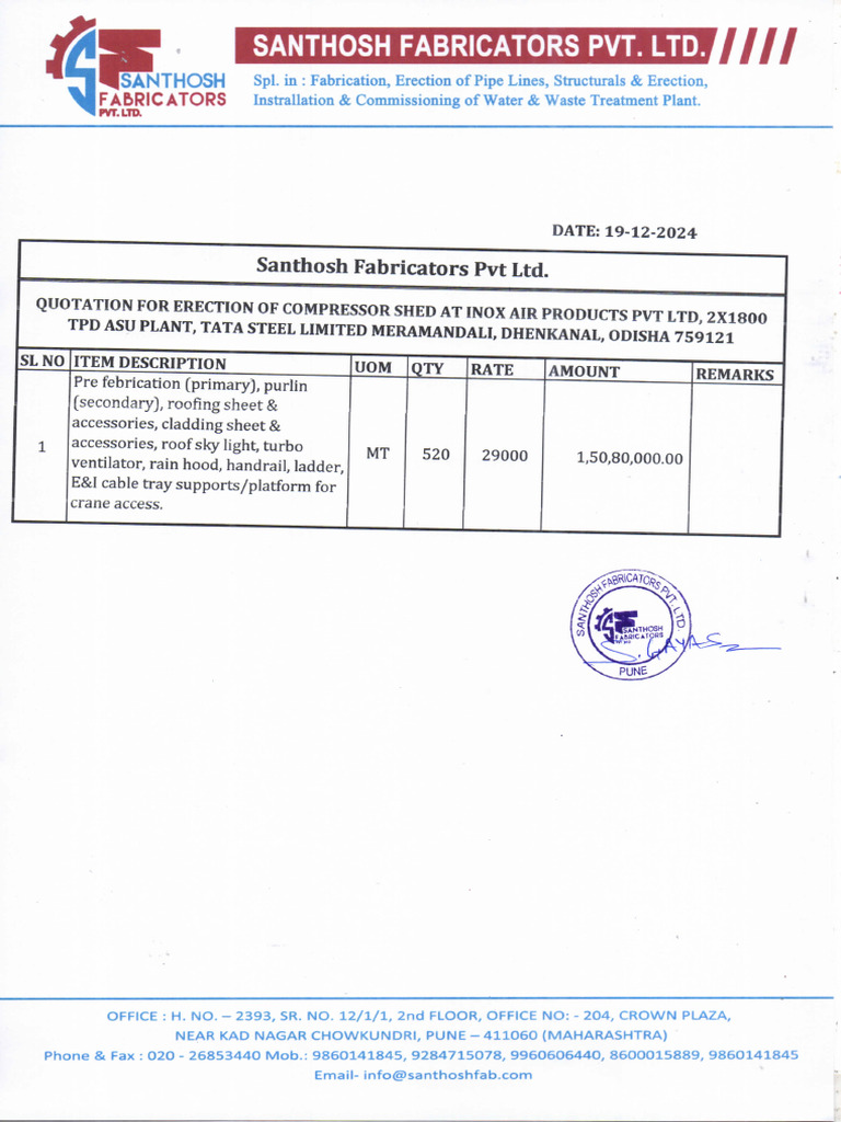 Quotation For Erection of Compressor Shed | PDF