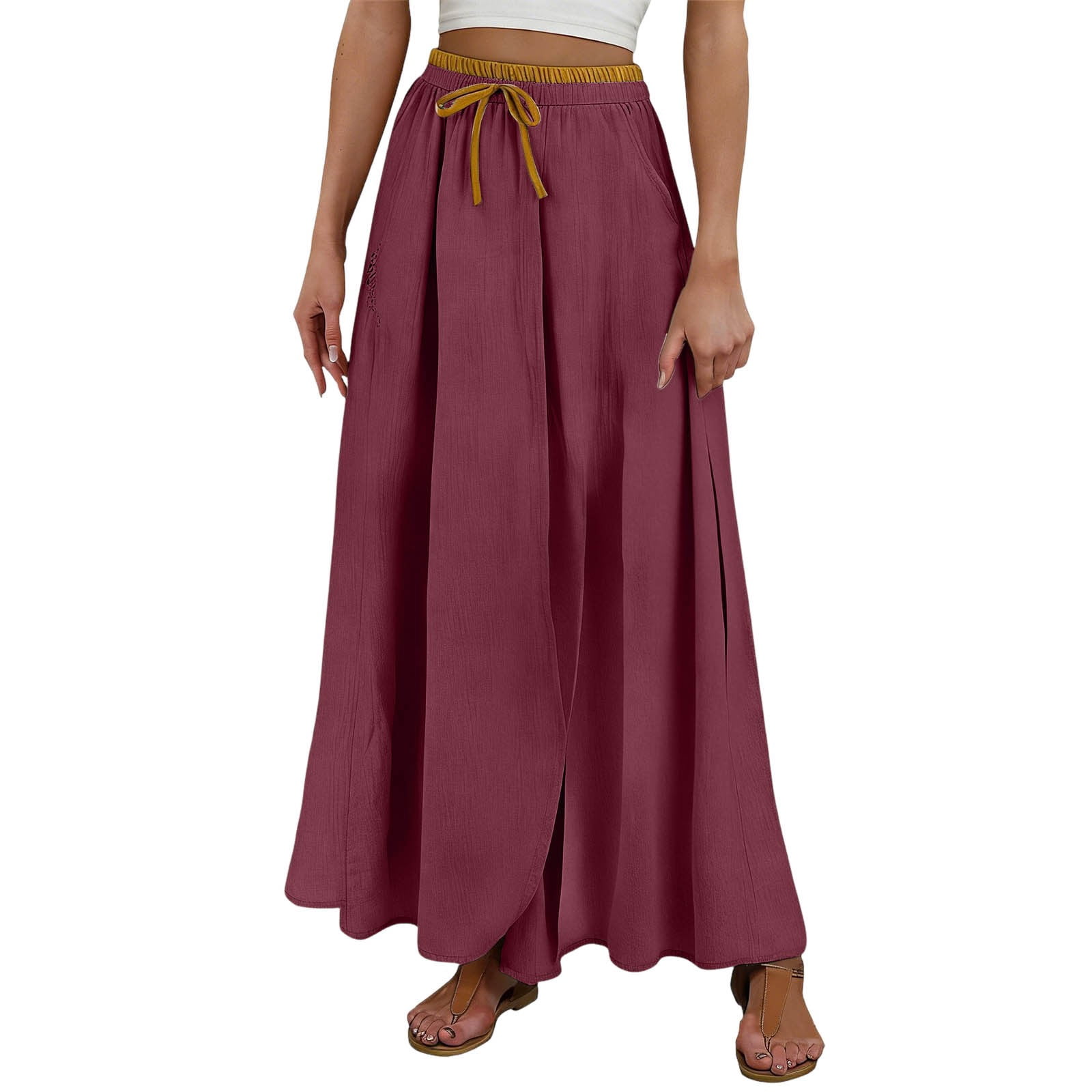 Venzia Women's High Rise Midi Skirt Wide Leg Casual Flowy Skirt with ...