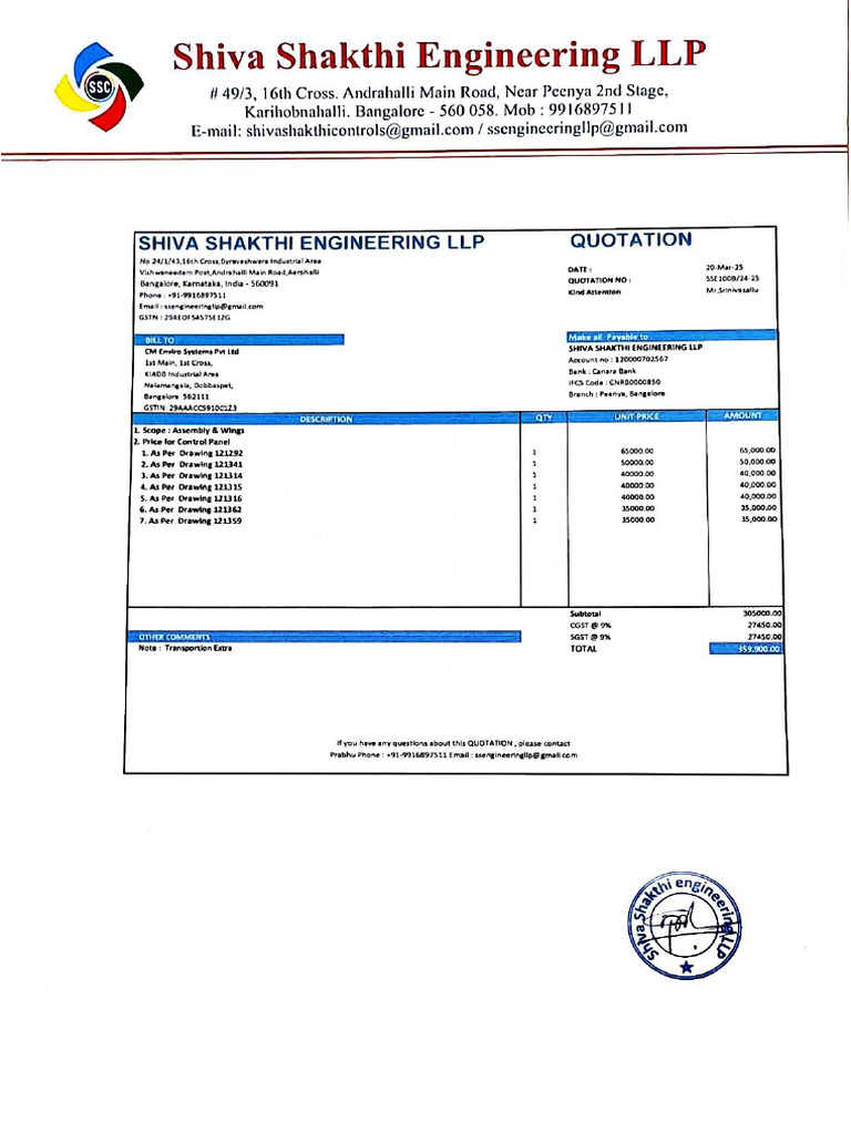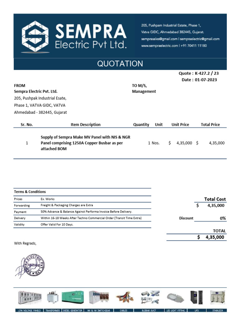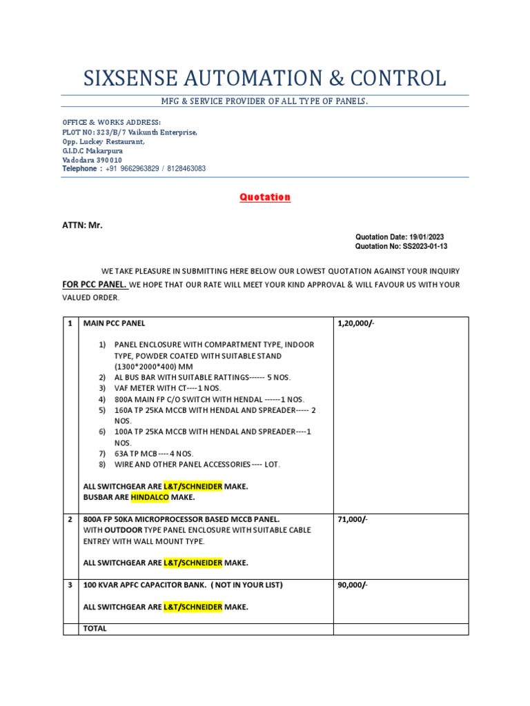 Quotation For Control Panel | PDF