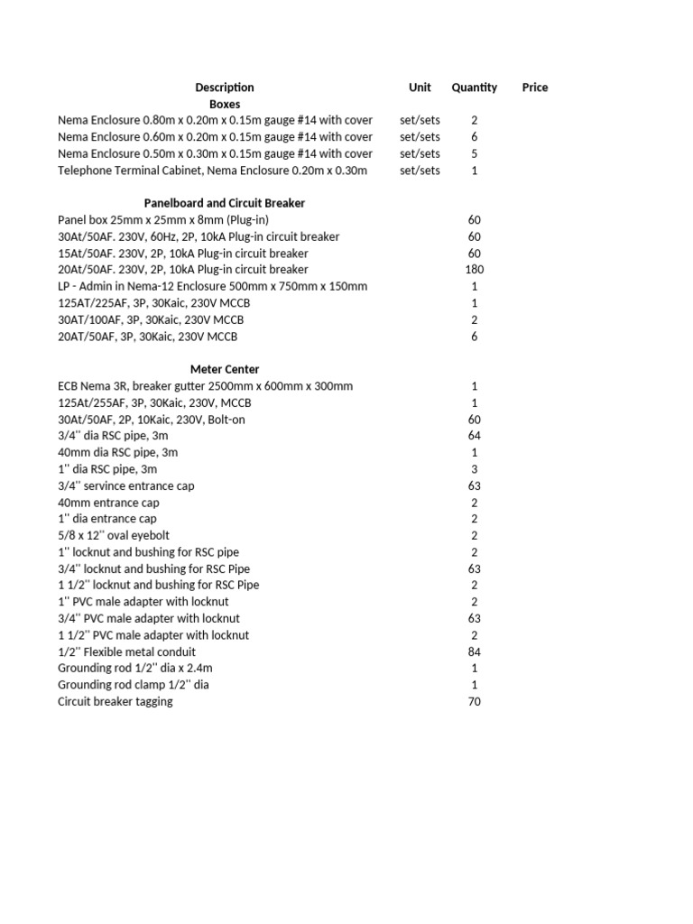 For Quotation - Panel Boxes, Meters, Breakers | PDF | Equipment ...