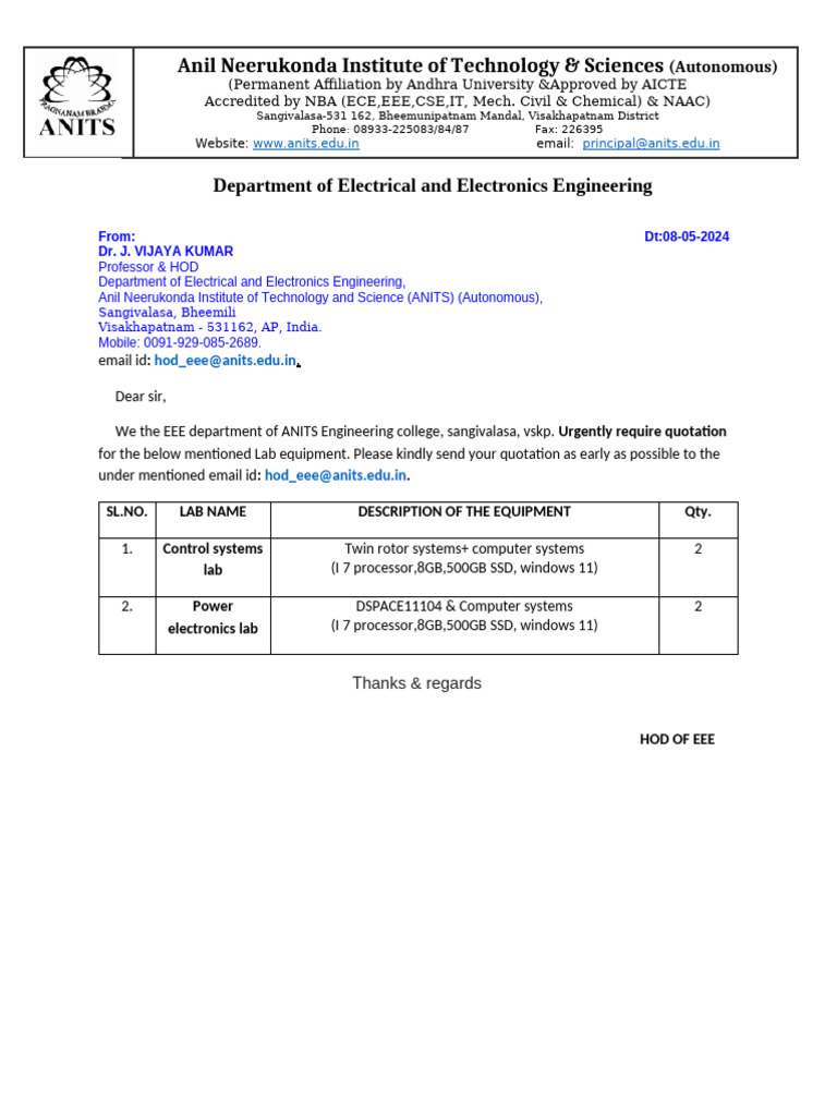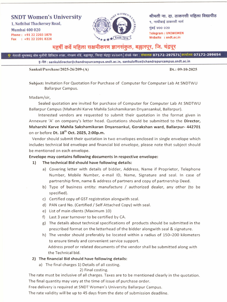 Quotation Call letter for the Computer Labs Items – The Women ...