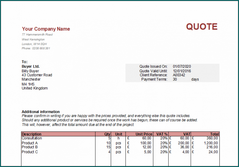 Quote Templates – Download free Quotations for Word, Excel and PDF