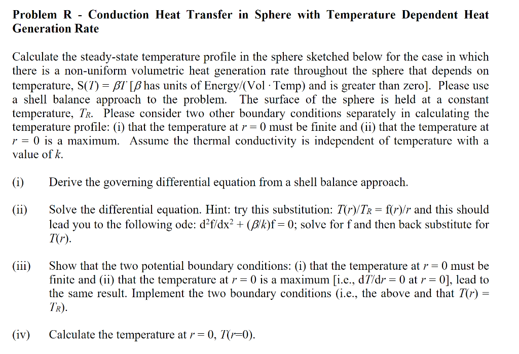 Problem R - Conduction Heat Transfer in Sphere with | Chegg.com