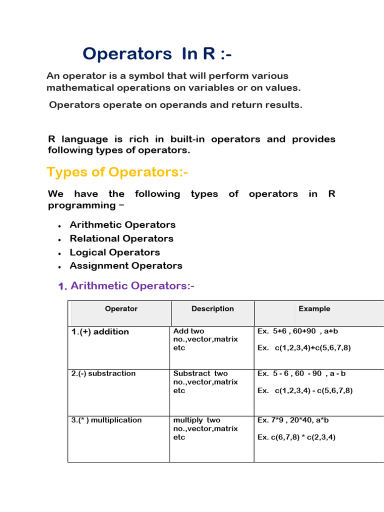 Mastering R Operators: A Comprehensive Guide for Students | Course Hero