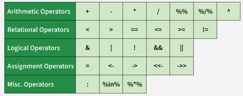 Operators in R | Arithmetic, Relational, Logical, Assignment Operators ...