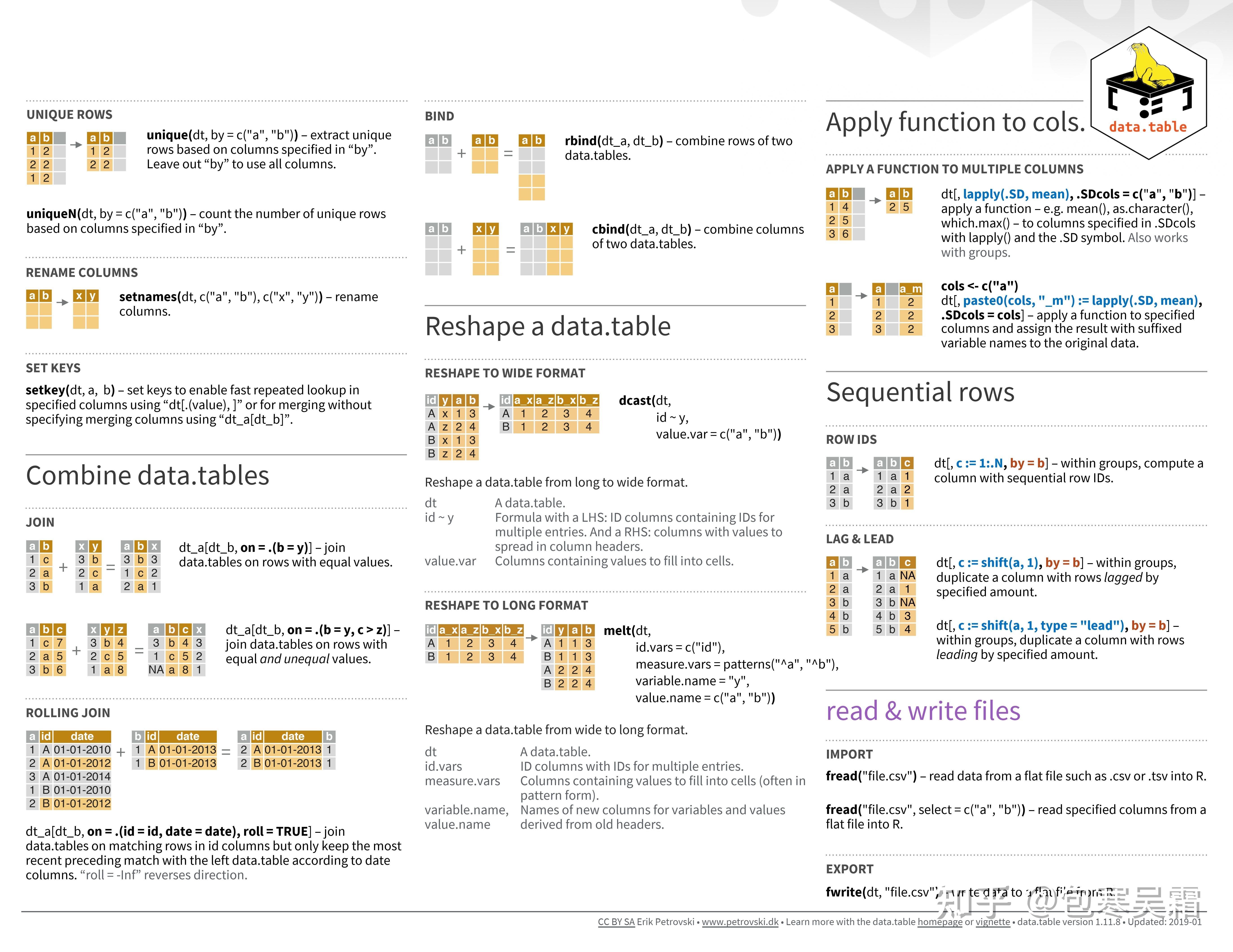 The data.table cheat sheet helps you master the syntax of this R ...