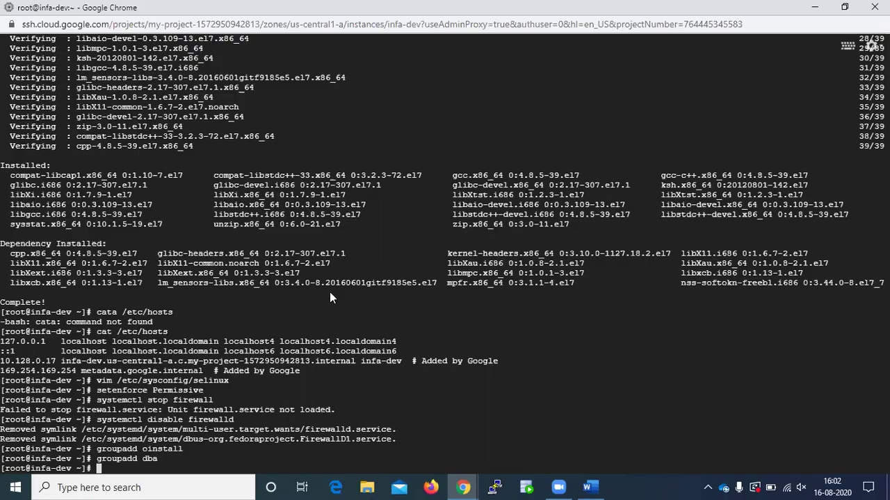 Installing Oracle 12C R2 database on Google Cloud VM (RHEL 7) in silent ...