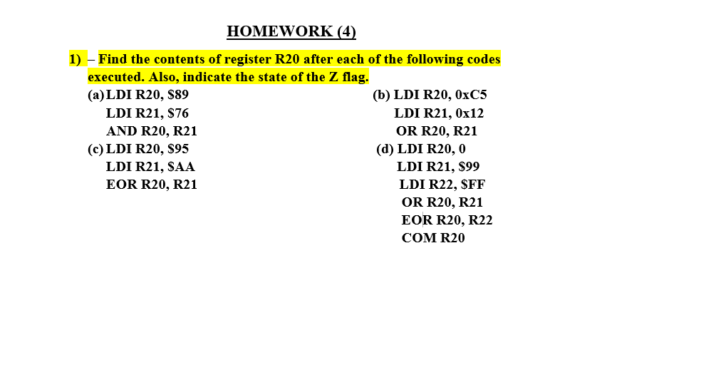 Solved HOMEWORK (4) 1) Find the contents of register R20 | Chegg.com