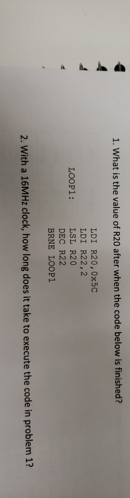 Solved 1. What is the value of R20 after when the code below | Chegg.com