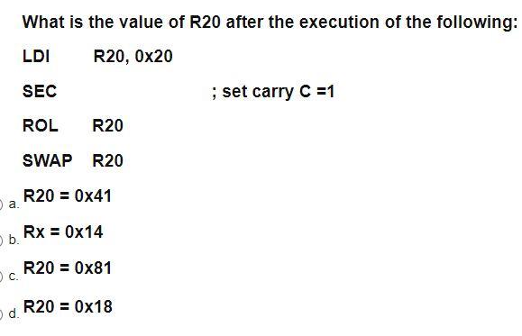 Solved Consider the AVR statements in r20, 0x03 ori r20, 20 | Chegg.com