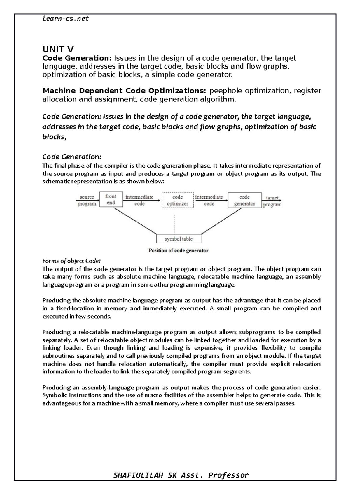 R20 CD Unit-5 - Code Generation and Optimization Notes - Studocu