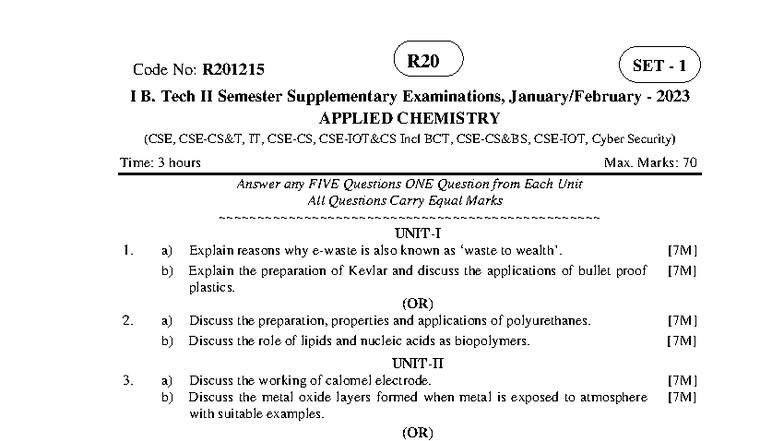 Applied Chemistry R20 Code: R201215 II Sem Supplementary Exam 2023 ...