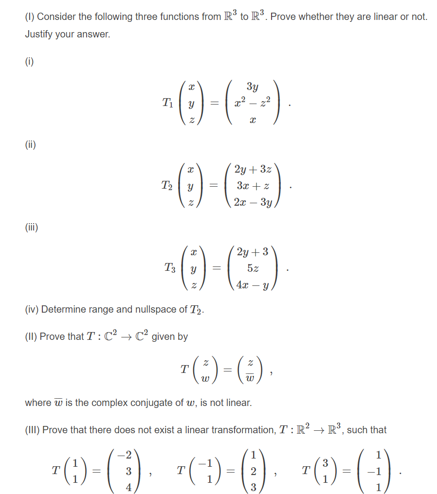 Solved Consider the following functions T:R3βR2. Explain why | Chegg.com