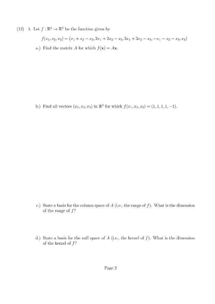 Solved (2) Consider the function f:R4βR3 given by | Chegg.com