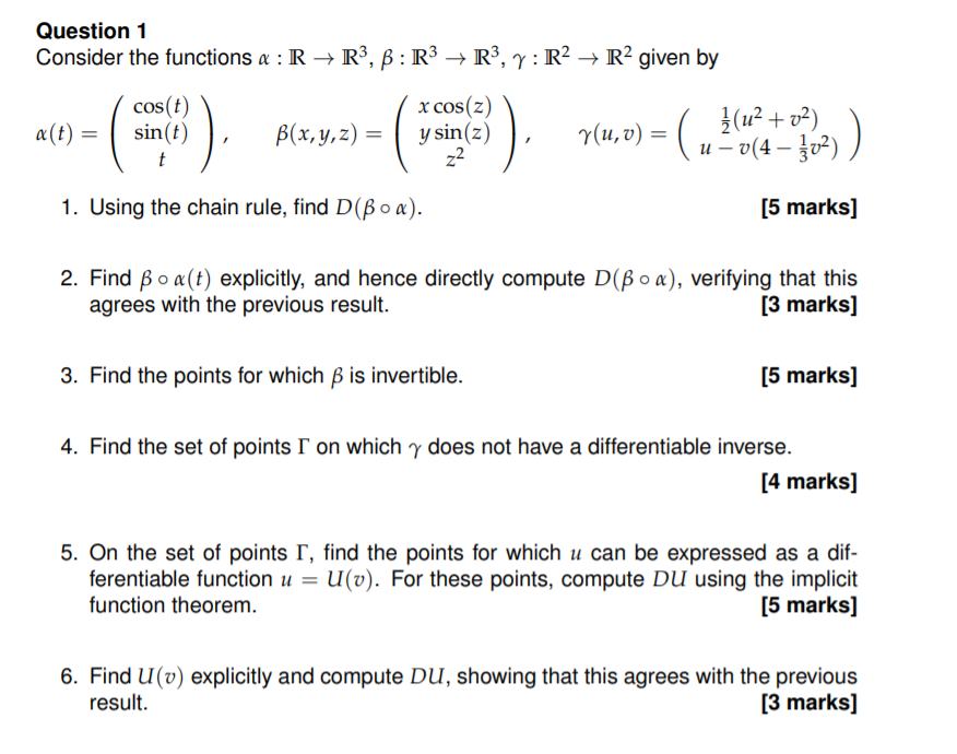 Solved Question 1 Consider the functions a : R β R3, Γ : R β | Chegg.com
