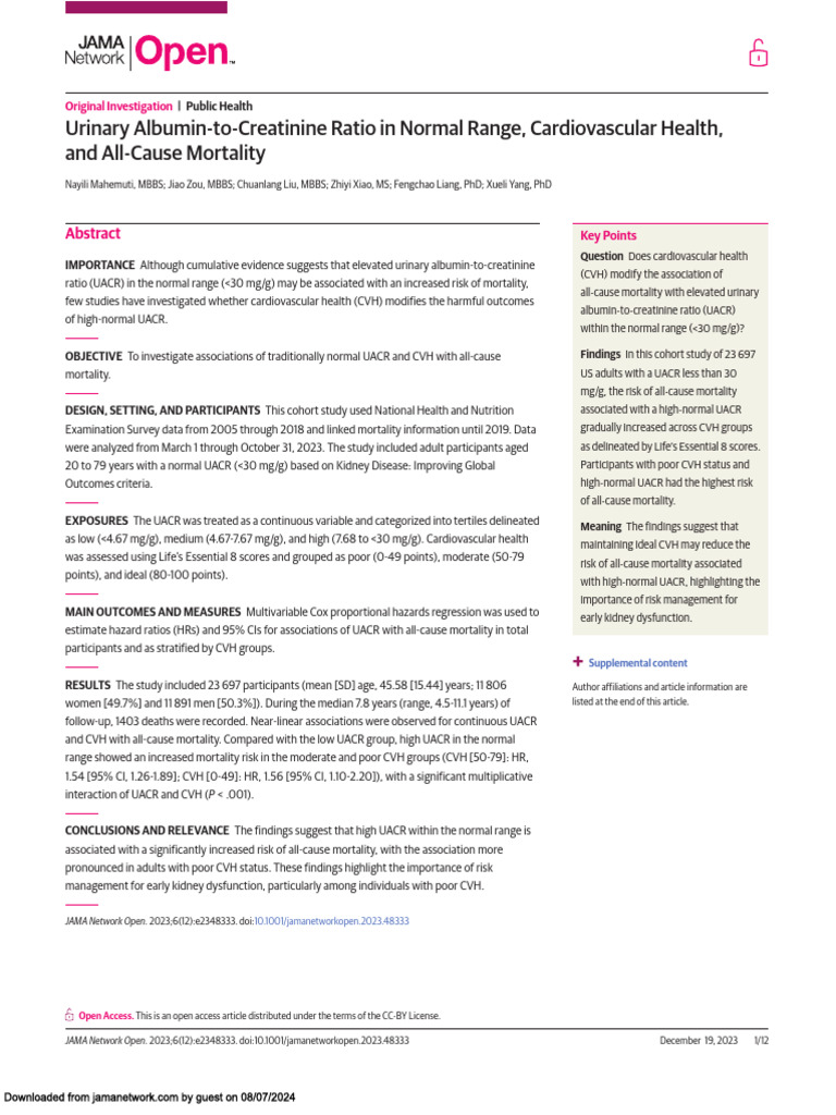 Urinary Albumin-to-Creatinine Ratio in Normal Range, Cardiovascular ...