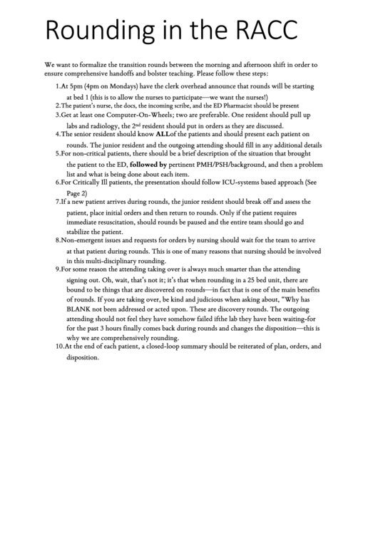 Rounding in The RACC Page 2 | PDF | Causes Of Death | Health Care