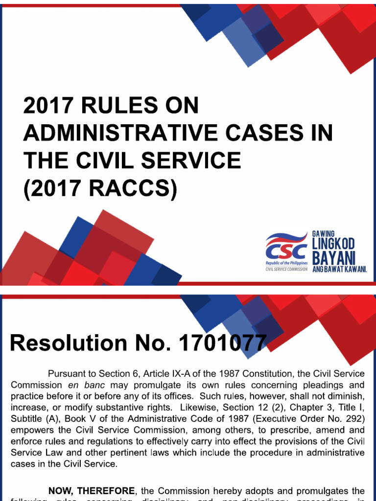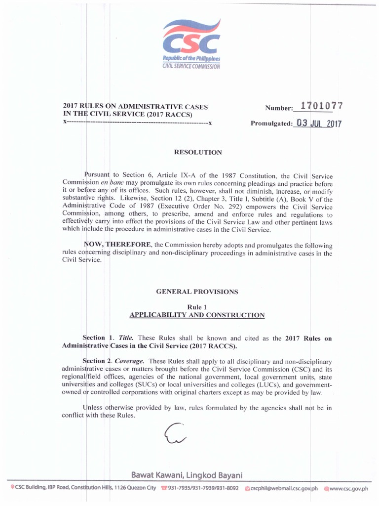 Rraccs - 2017 Rules on Administrative Cases in the Civil Service (2017 ...