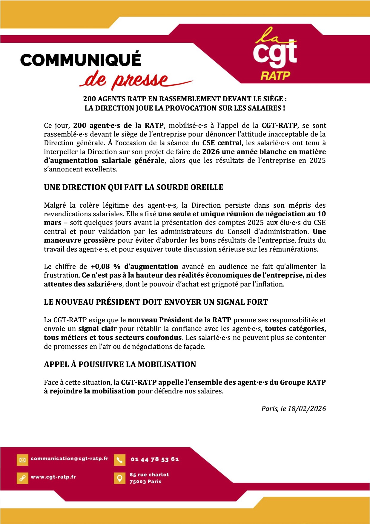 200 AGENTS RATP EN RASSEMBLEMENT DEVANT LE SIÈGE – cgt-ratp