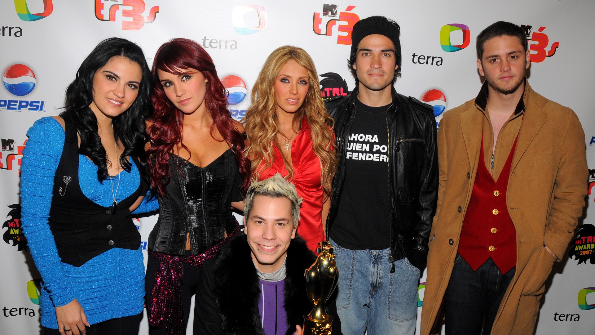 The group RBD poses for photos after winning the Tu Mundo Award in the ...