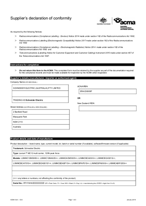 ACMA Supplier DOC RCM RMNF22TB30 Declaration of conformity | Schneider ...
