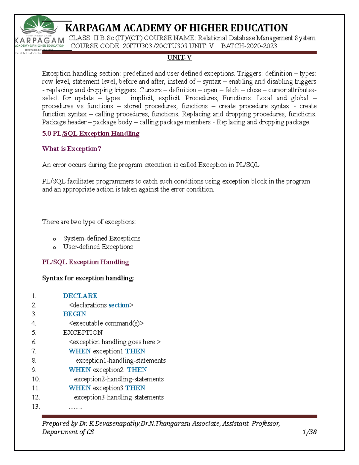 Rdbms KAHE UNIT 5 - notes - CLASS: II B (IT)/(CT) COURSE NAME ...