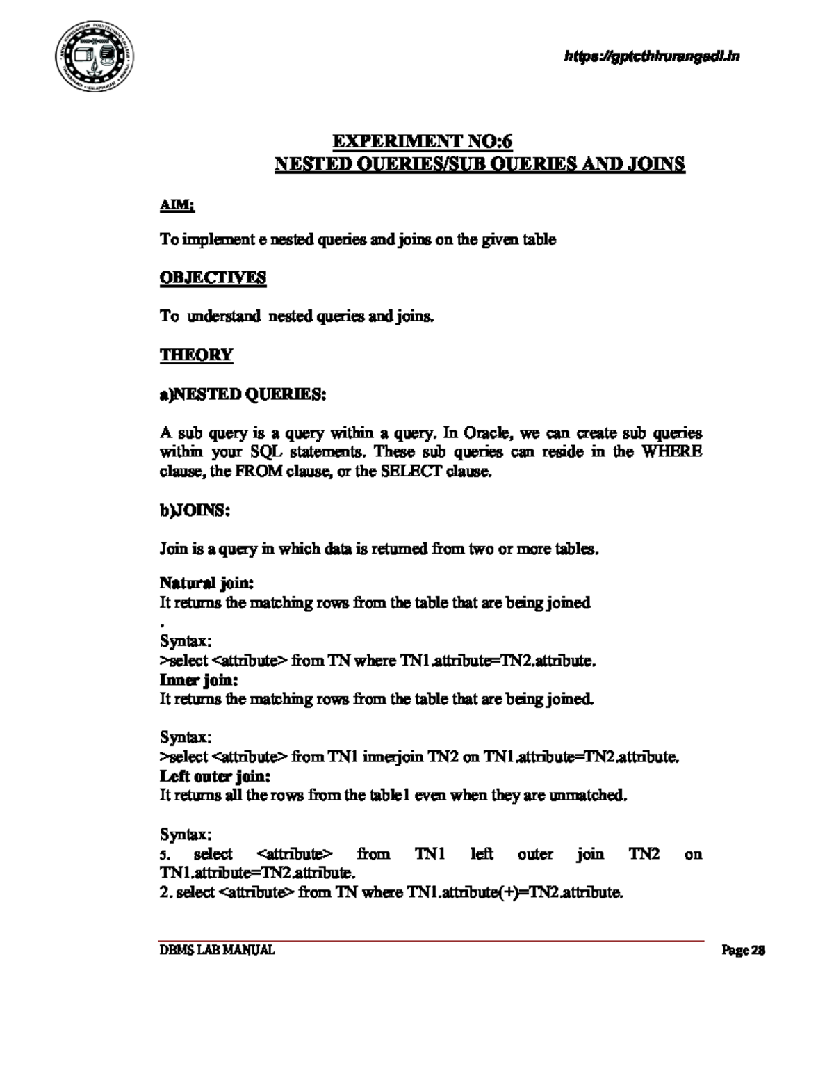 (PDF) RDBMS Exercises for Hands-on - WordPress.com · subject RDBMS ...