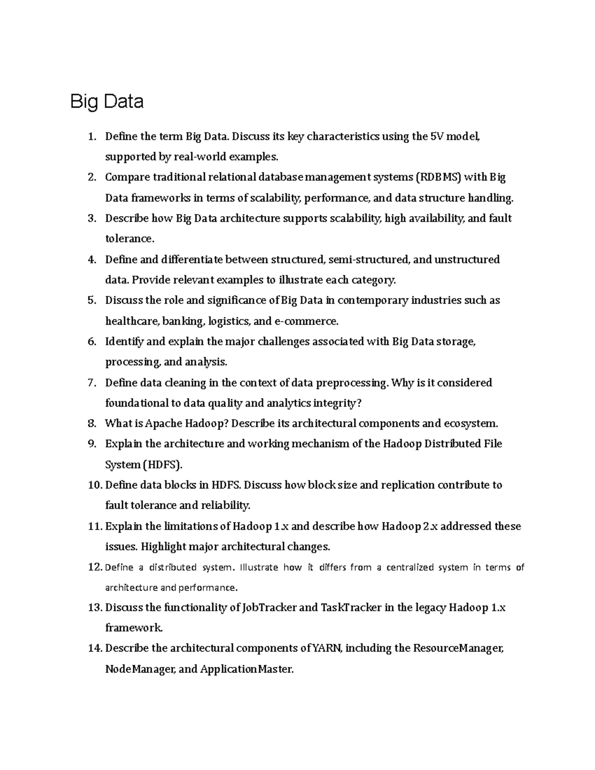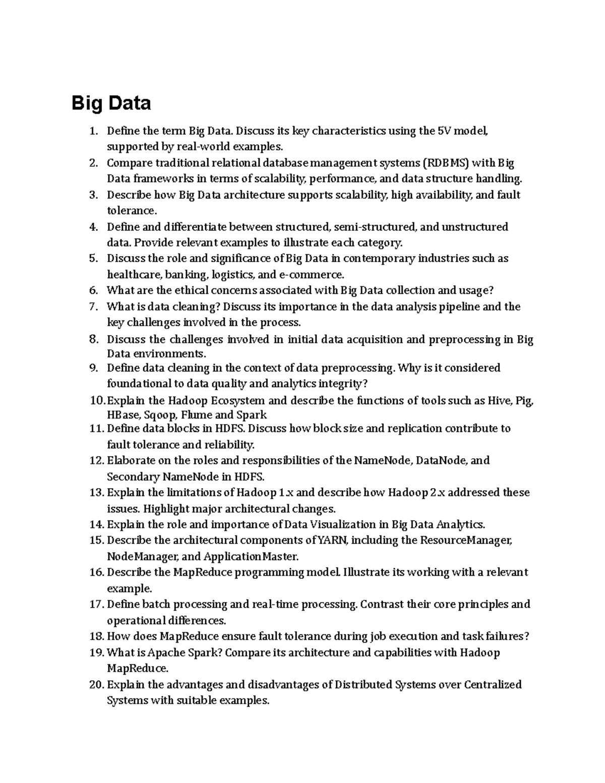 Big Data (CS101) Practice Questions: Key Concepts & Comparisons - Studocu