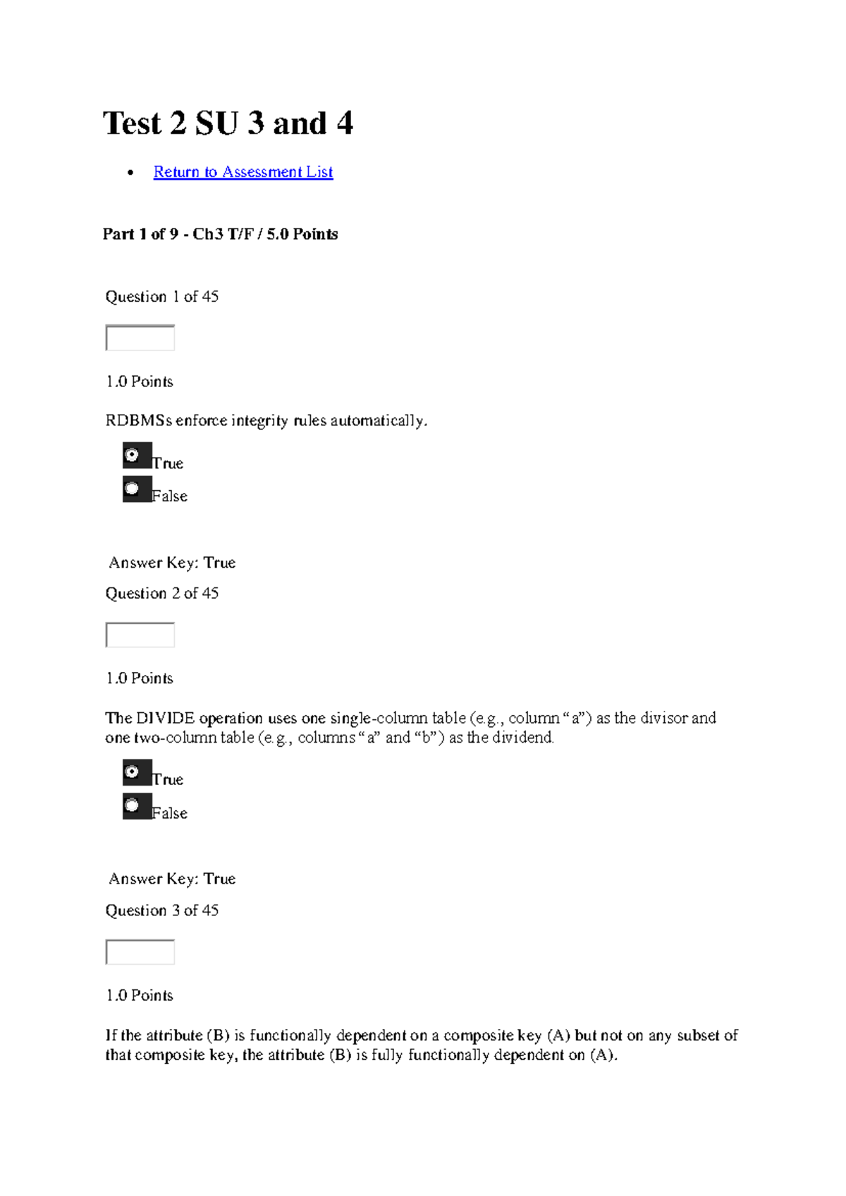Test 2 SU 3 & 4: Online Assessment Questions & Answers - Studocu