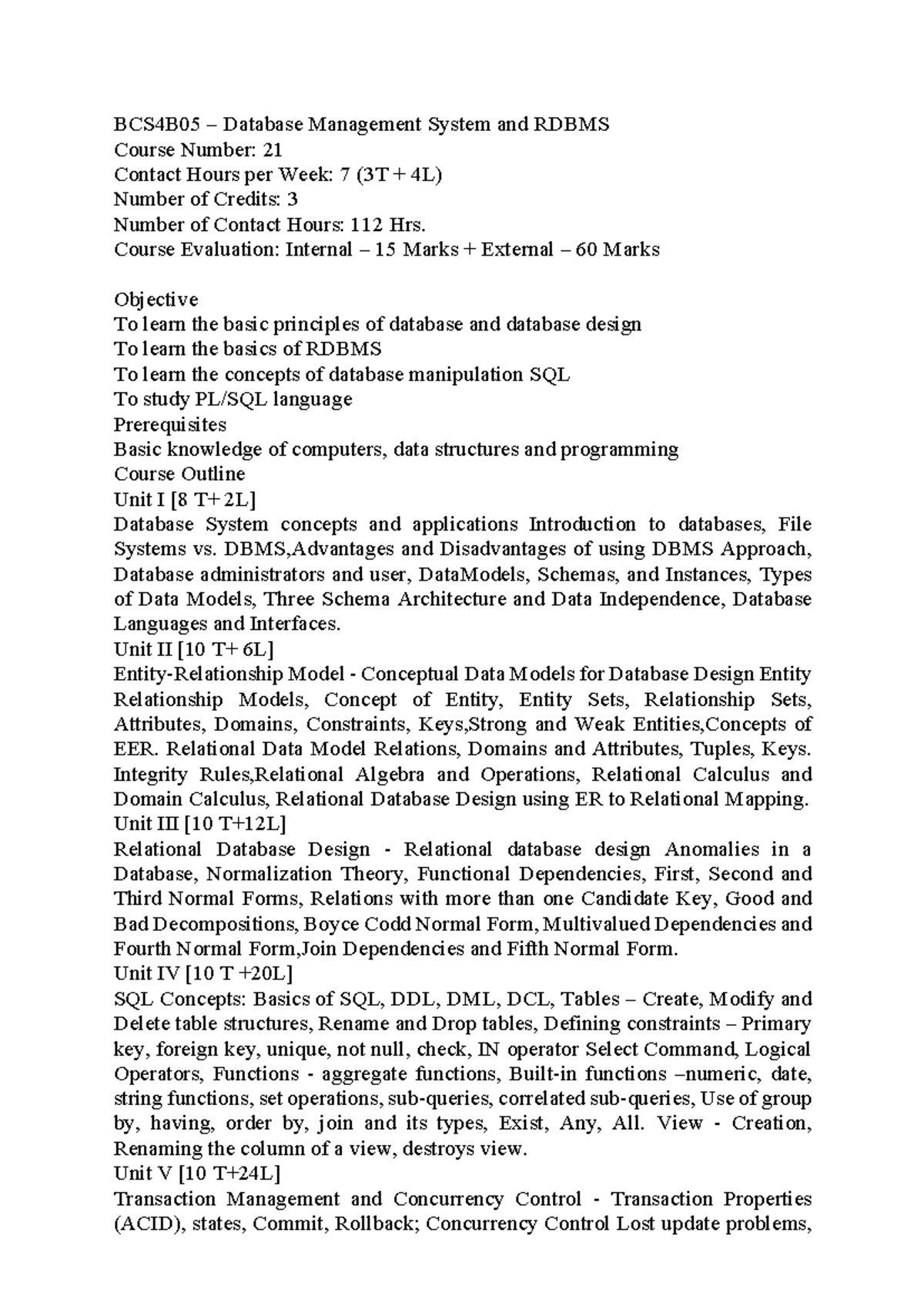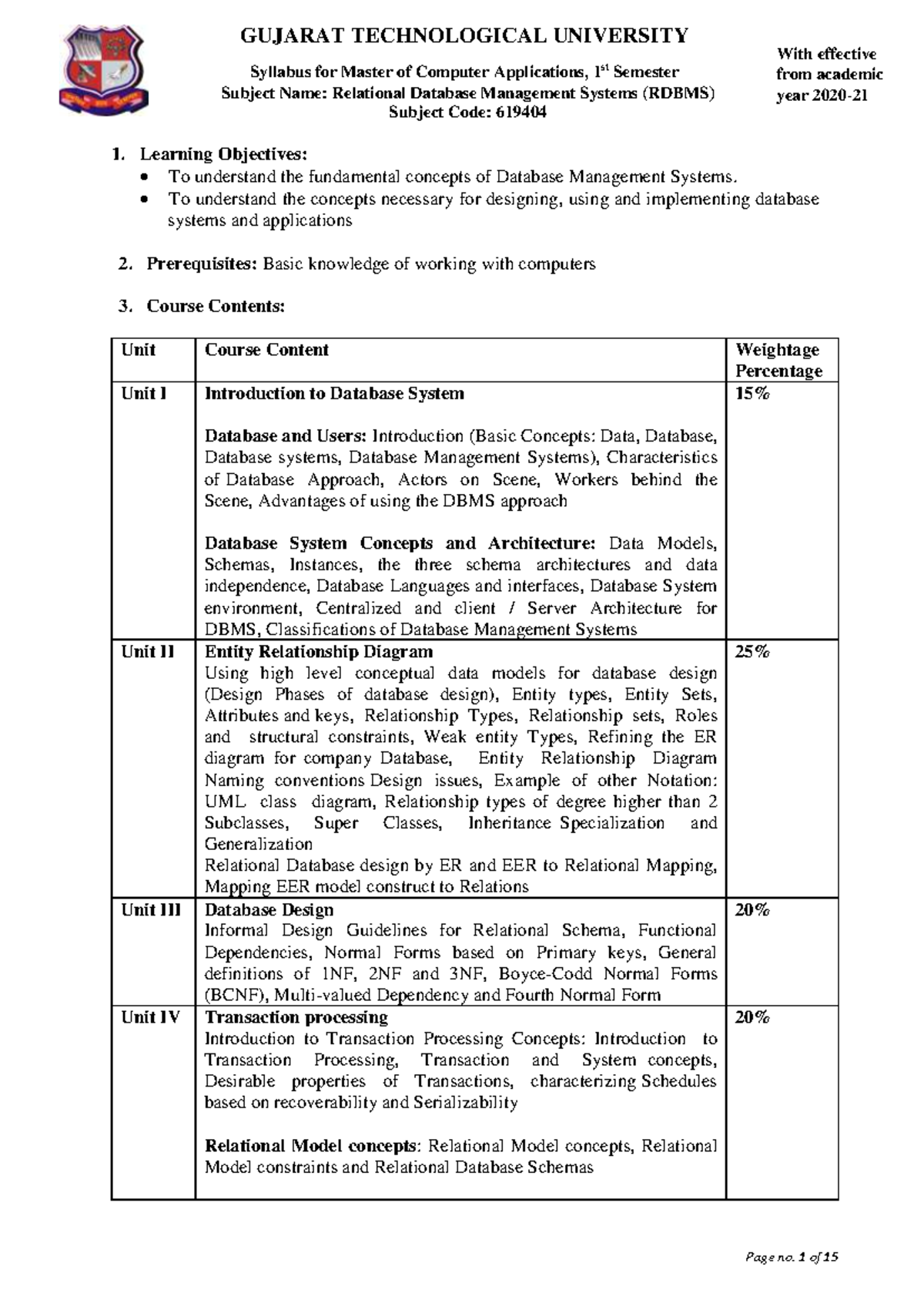 RDBMS Syllabus and Course Content for MCA 1st Sem (619404) - Studocu