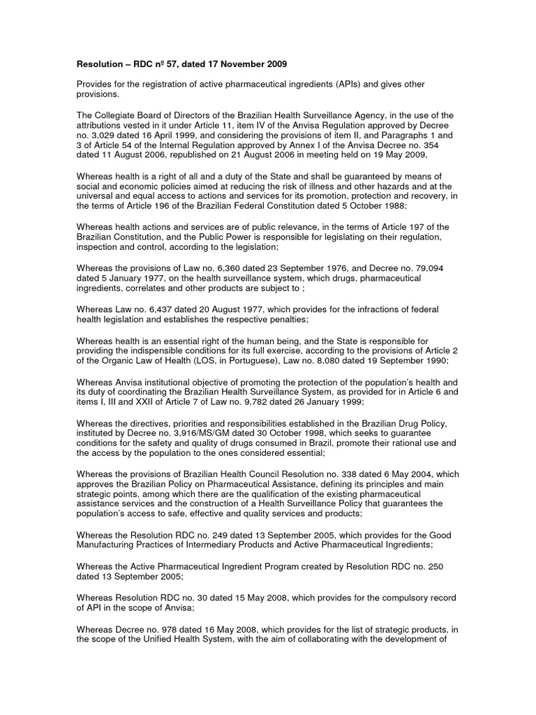 RDC 57/2009: API Registration Guidelines | PDF | Chemical Substances ...