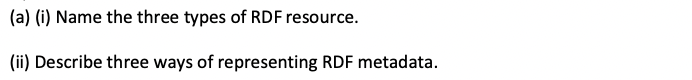 Solved (a) (i) Name the three types of RDF resource.(ii) | Chegg.com