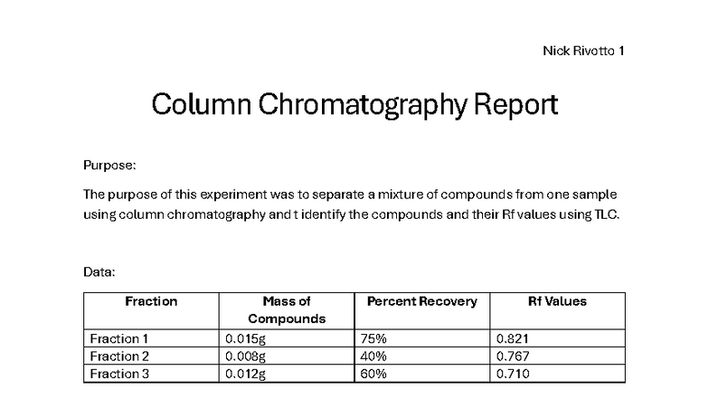 Column Chromatography Report: Separation & Rf Values Analysis - Studocu