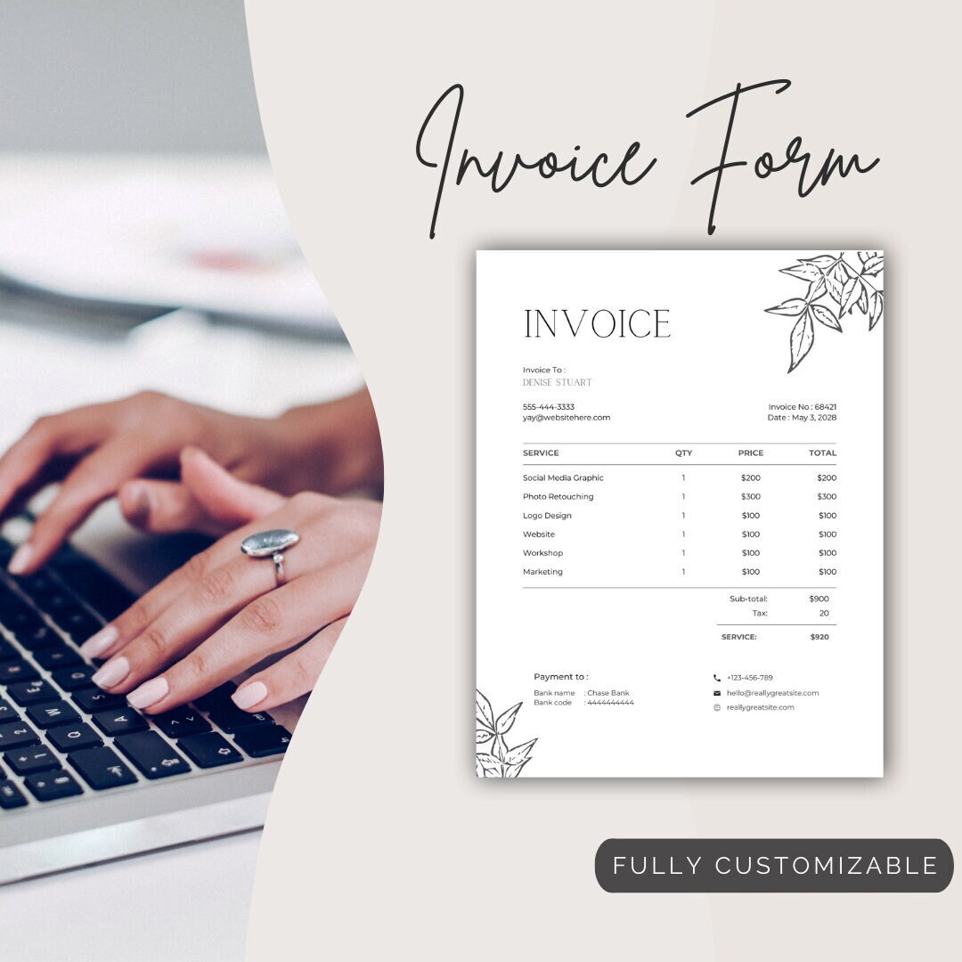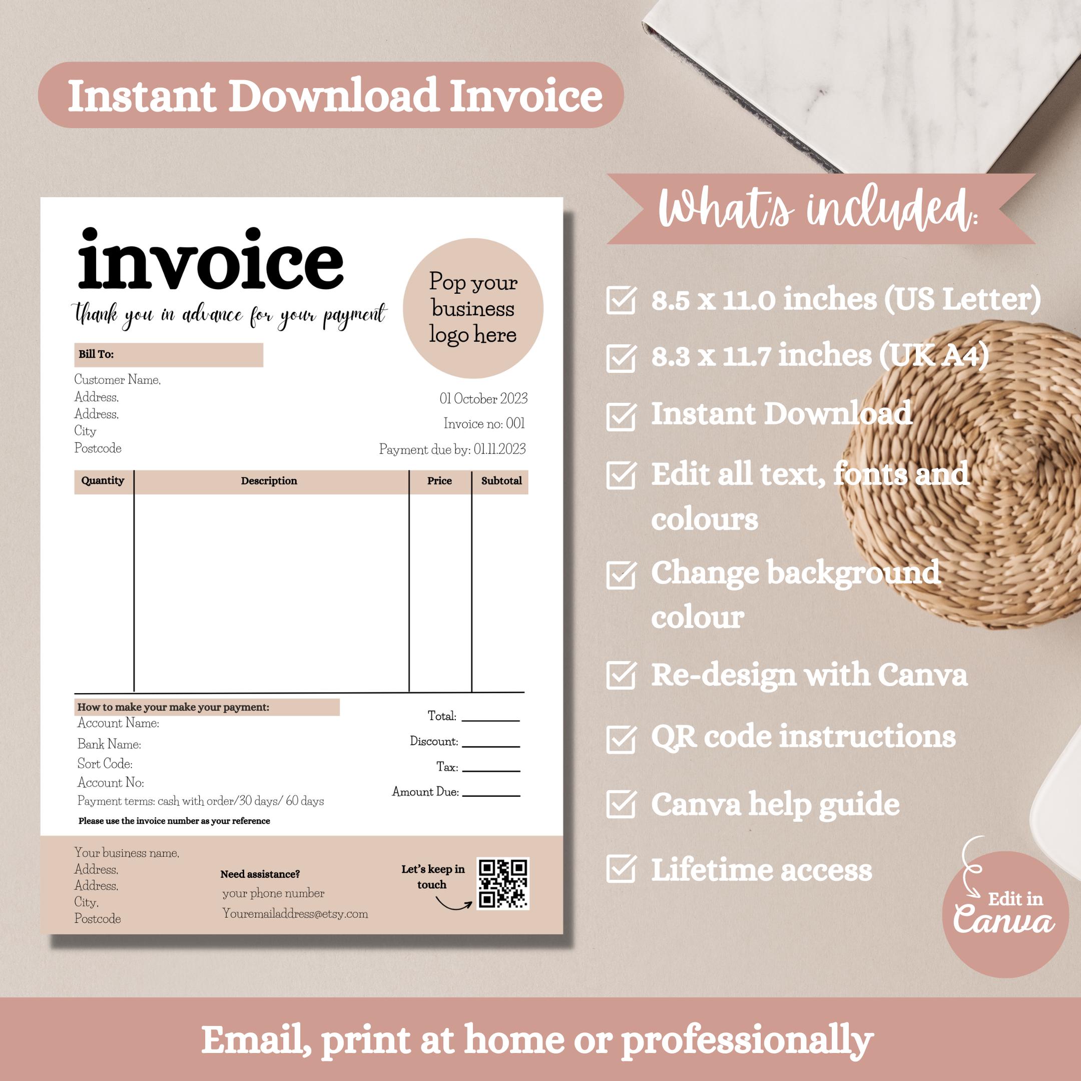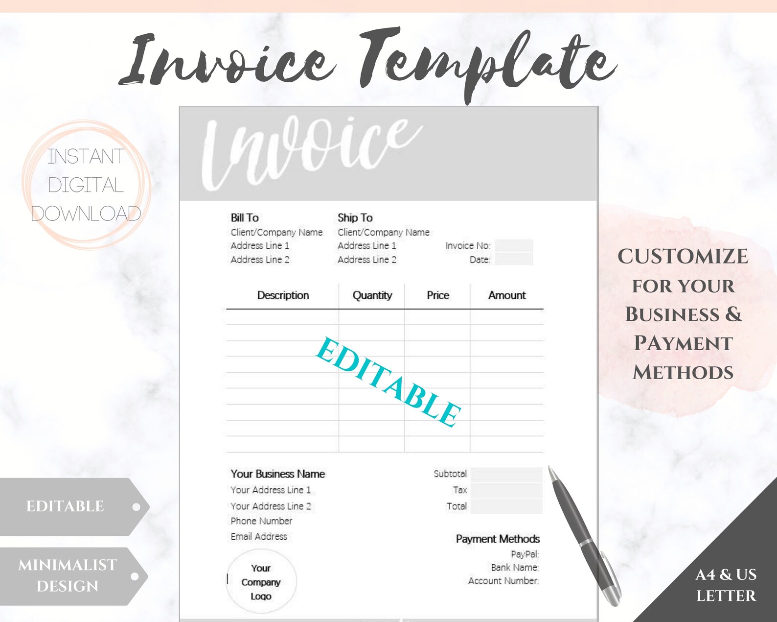 Invoice Template Printable Invoice Editable Invoice | Etsy