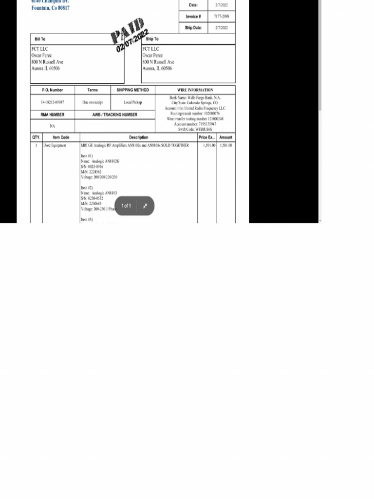 Invoice Eugene Telles United RF Bad Amplifiers Sold On Ebay | PDF