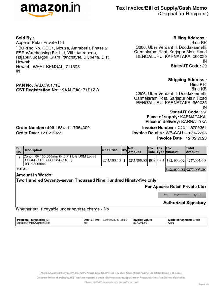 Canon RF 100-500mm Lens | PDF | Invoice | Taxes
