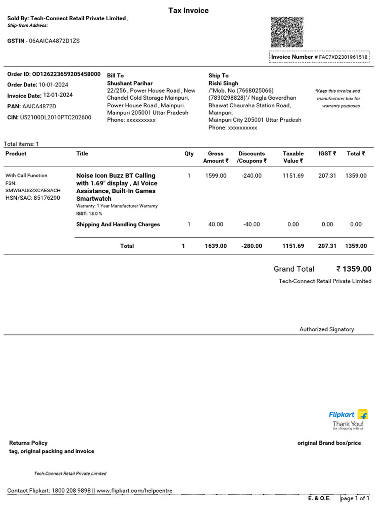 Invoice for Smartwatch Purchase | PDF | Taxes