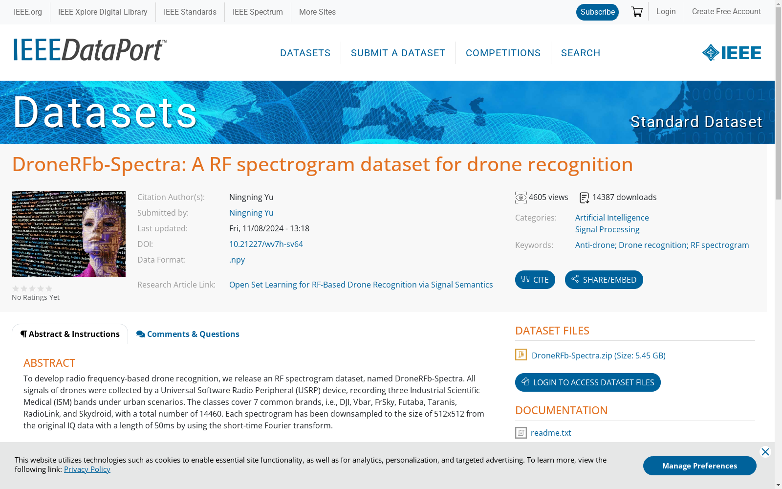 DroneRFb-Spectra: A RF spectrogram dataset for drone recognition