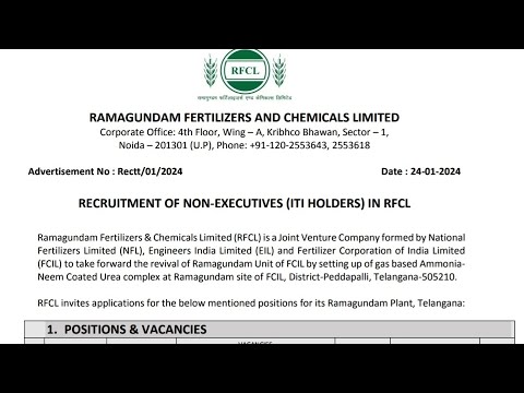 Ramagundam Fertilizers and Chemicals Limited jobs || RFCL RECRUITMENT ...