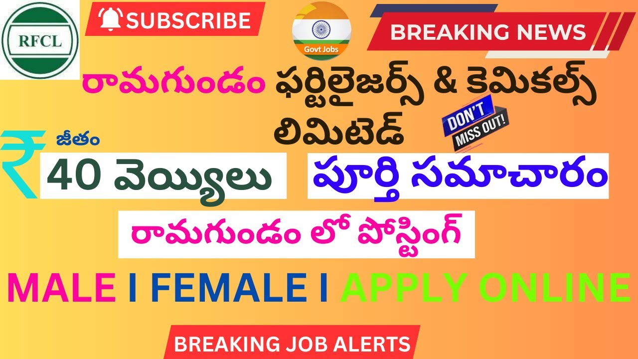 RFCL Recruitment 2024 || govt jobs in Telangana || Ramagundam ...